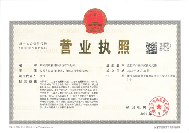 紹興興欣新材料股份有限公司成立于2002年06月27日,占地面積122畝,位于杭州灣上虞經(jīng)濟(jì)技術(shù)開發(fā)區(qū)拓展路2號,現(xiàn)有職工200余人,專業(yè)技術(shù)人員50余人;博士、碩士研究生30余人組成的一支知識型、專業(yè)化的技術(shù)科研團(tuán)隊。公司面向全球市場,專業(yè)開發(fā)電子化學(xué)品、環(huán)保化學(xué)品、醫(yī)藥中間體、高分子材料等先進(jìn)新材料重點(diǎn)領(lǐng)域的省級科技型企業(yè);建有浙江上虞、安徽東至兩個生產(chǎn)基地。目前為“國家高新技術(shù)企業(yè)”、浙江省“隱形冠軍”企業(yè)、浙江省專精特新中小企業(yè);建有“省級”研究開發(fā)中心,共建天津大學(xué)浙江紹興研究院電子化學(xué)品研發(fā)中心。